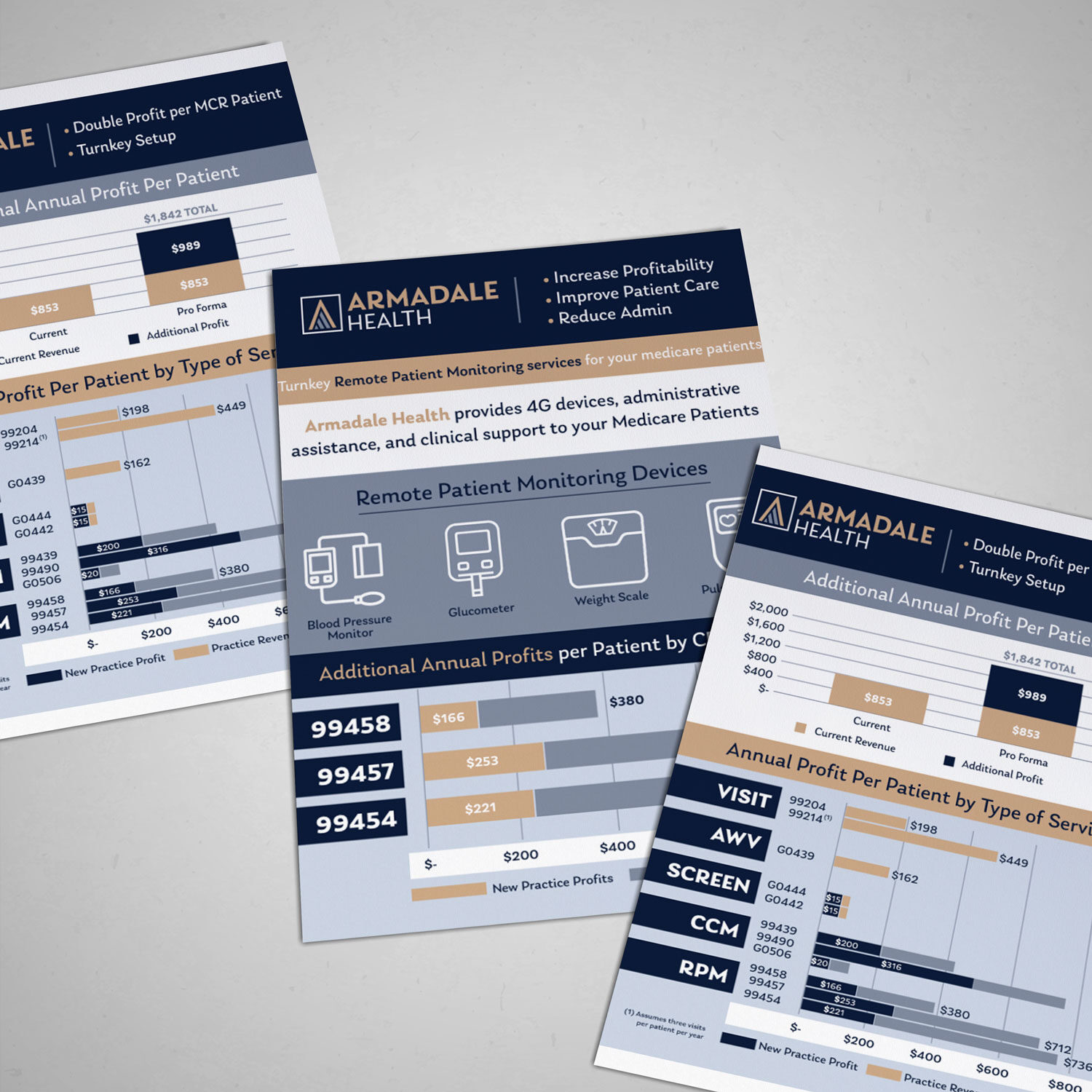 I began by creating a complete brand identity system, starting with a logo that captured Armadale Health’s focus on holistic care and patient connection. The logo design paired a clean, modern typeface with a simple, symbolic mark that conveyed balance and well-being. From there, I developed a complementary color palette and a set of matching graphics and icons designed to visually illustrate the practice’s key services.