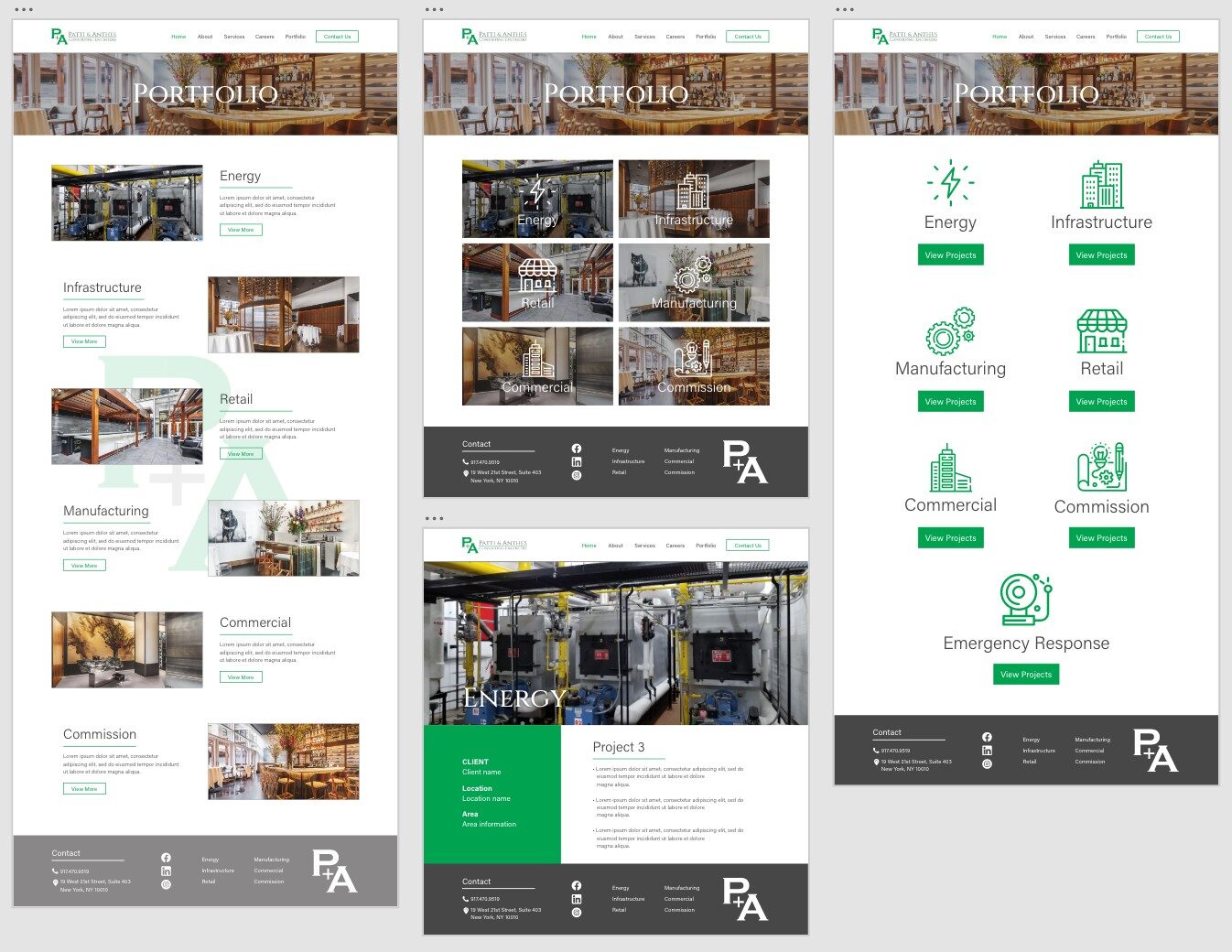 After defining the site structure and content strategy, I moved into high-fidelity design to establish the visual direction and user interface. I created multiple homepage concepts in Adobe XD—one emphasizing bold imagery to showcase projects, and another focusing on clear content blocks to guide users through services and company information. These variations helped the client visualize different approaches and provide feedback on layout, hierarchy, and tone.