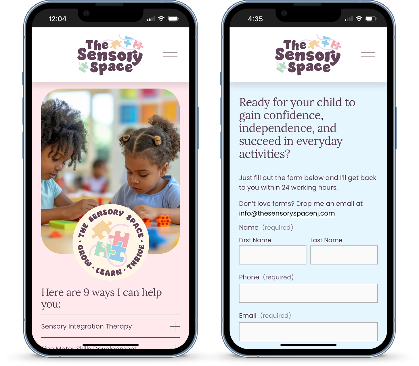 The final result is a cohesive, user-centered brand and website that communicate warmth, expertise, and trust—helping The Sensory Space connect authentically with families seeking care.